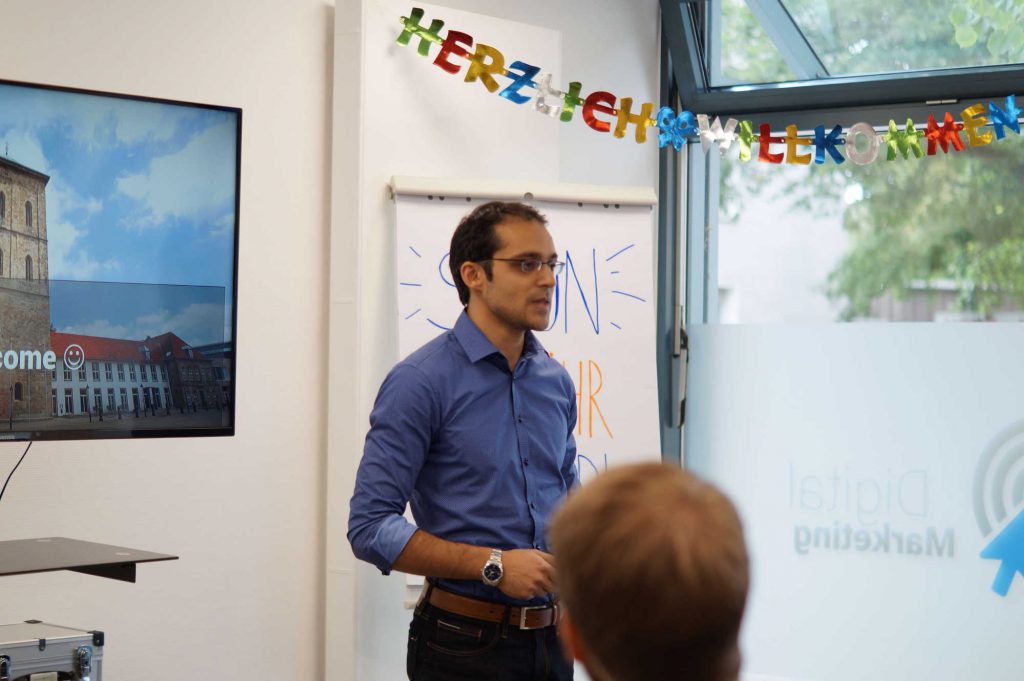 Nachdem der kleine Rundgang abgeschlossen war, begaben wir uns alle in den großen Konferenzraum, wo Schahab, der Geschäftsführer von MSO und nun auch einer unserer Chefs, eine Willkommenspräsentation vorgestellt hat. Danach gab es Kaffee, Kuchen und die Möglichkeit, sich mit den anderen neuen Teamkollegen auszutauschen. Aber das war nicht alles: Nach der kurzen Kaffeeklatschrunde wurde uns verkündet, dass eine Fotorallye durch Osnabrück stattfindet. Die Teams bestanden aus drei MSO-Digitalern und einer Person von netspirits. Ich muss zugeben, dass ich am Anfang etwas nervös war, in eine Gruppe gesteckt zu werden, wo ich niemanden kenne, war im Nachhinein aber sehr zufrieden mit der Konstellation. Die Fotorallye war sehr cool und hat viel Spaß gemacht und man konnte die anderen währenddessen sehr gut kennenlernen, so auch Osnabrück. Vor allem die schöne Altstadt hat es mir angetan. Natürlich haben wir jede Frage gemeistert und das ganz ohne Google, sondern mit Köpfchen und der Hilfe von Fremden (okay, ein bisschen Google vielleicht). Wir sind zwar nicht unter die Top 3 gekommen, waren aber ganz klar Sieger der Herzen :p. Da ich auch mit einer Auszubildenden von MSO in der Gruppe war, konnte ich mich mit ihr über die Ausbildung austauschen.