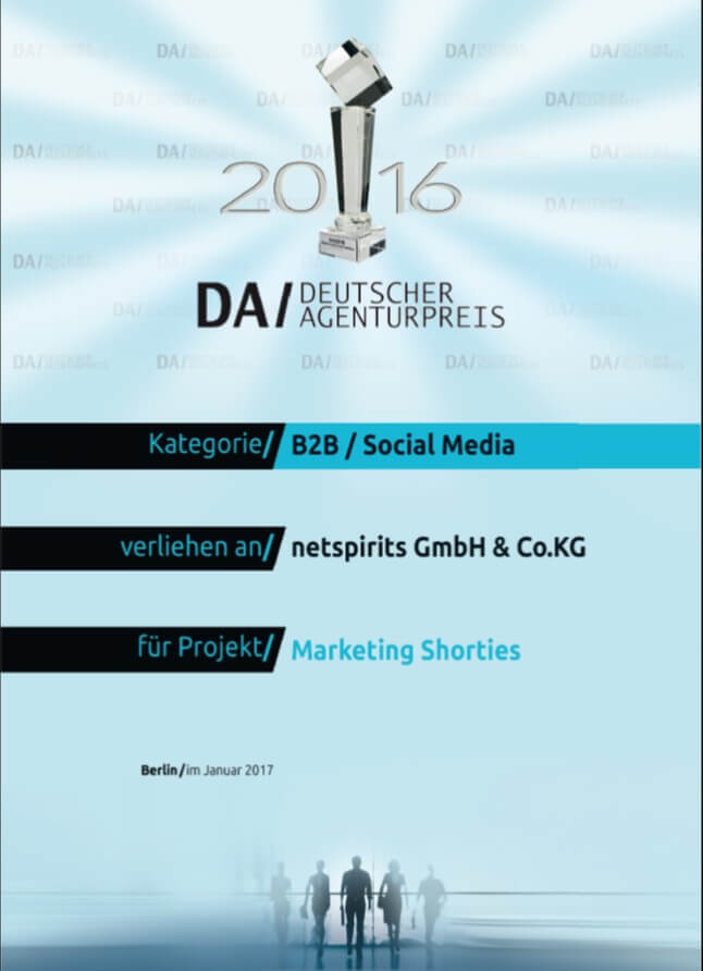 Marius begleitete auch ein spannendes internes Projekt, für das wir mit dem Deutschen Agenturpreis in der Kategorie B2B/Social Media als Sieger ausgezeichnet wurden: Unsere Marketing Shorties, die häufig gestellte Fragen rund ums Online-Marketing beantworten, sind ein voller Erfolg. Diesen neuen Ansatz konnten wir danach auch an unsere Kunden wie z. B. Bayer AG oder Toyota erfolgreich übertragen.